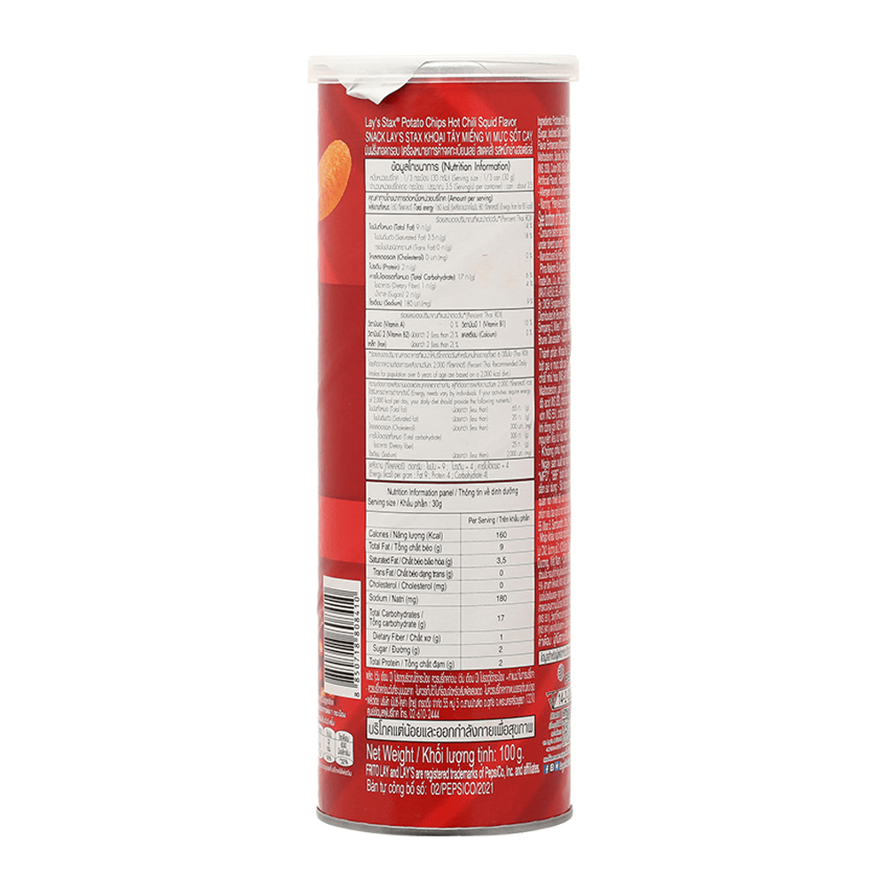 Usage Suggestions: Enjoy LAY'S STAX Hot Chili Squid Potato Chips as a spicy snack on their own, or pair them with dips for an extra flavor boost. They're great for parties, movie nights, or anytime you crave a snack with a kick.