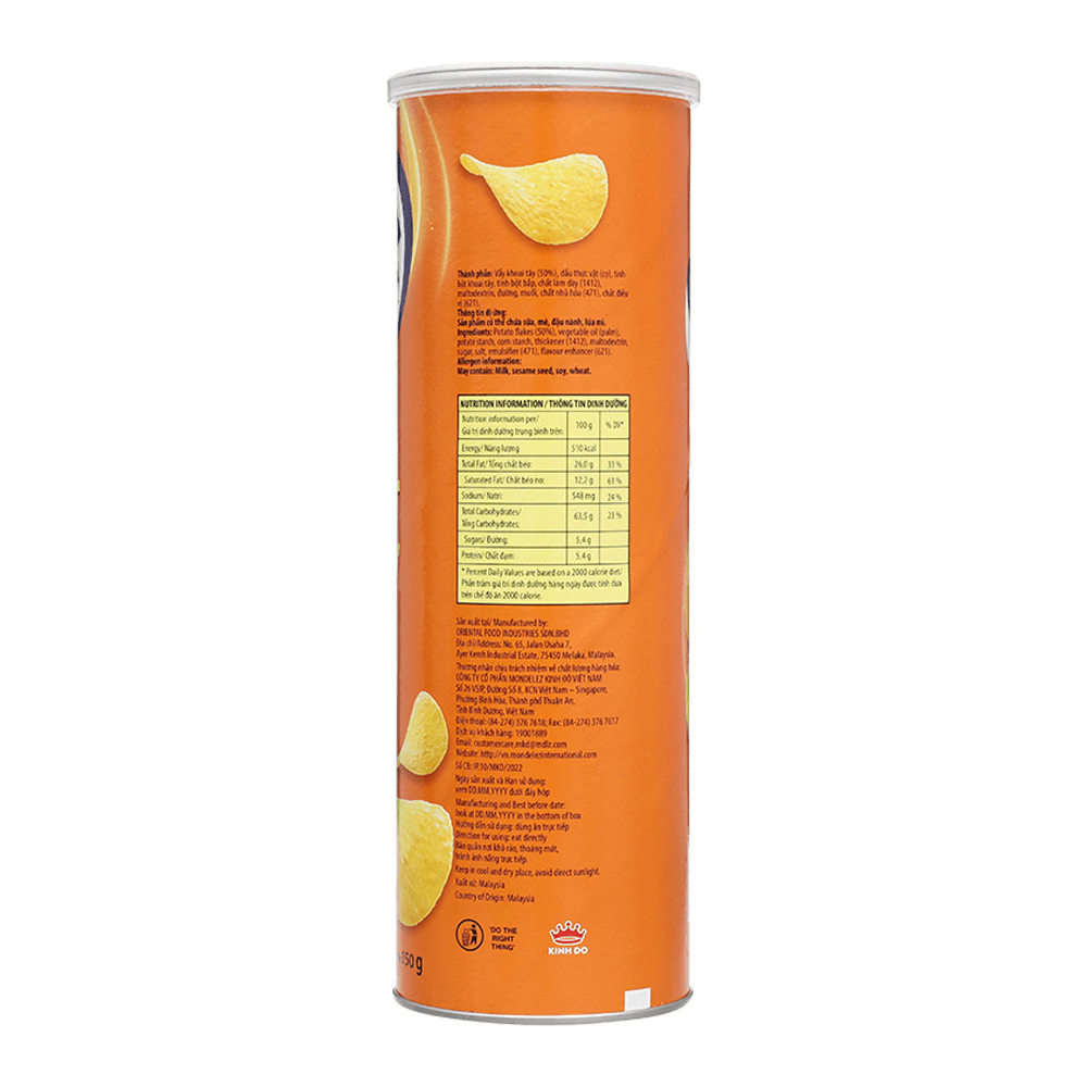 The main ingredient is, of course, potatoes. They are thinly sliced and fried to create the crispy texture of the chips. Vegetable oil, such as sunflower oil or palm oil, is used for frying the potato slices until they become crispy. Each flavor variant may contain different seasonings to achieve its distinct taste. Common seasonings include salt, pepper, spices, herbs, cheese powder, barbecue seasoning, or sour cream and onion flavoring.